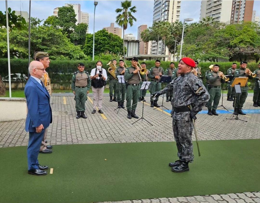 O Ten Cel PM Bessa, representando a Casa Militar do Ceará, participou das honras militares, recepcionando a autoridade uruguaia na sua chegada e conduzindo-a para reunião com a vice-governadora, Jade Romero.