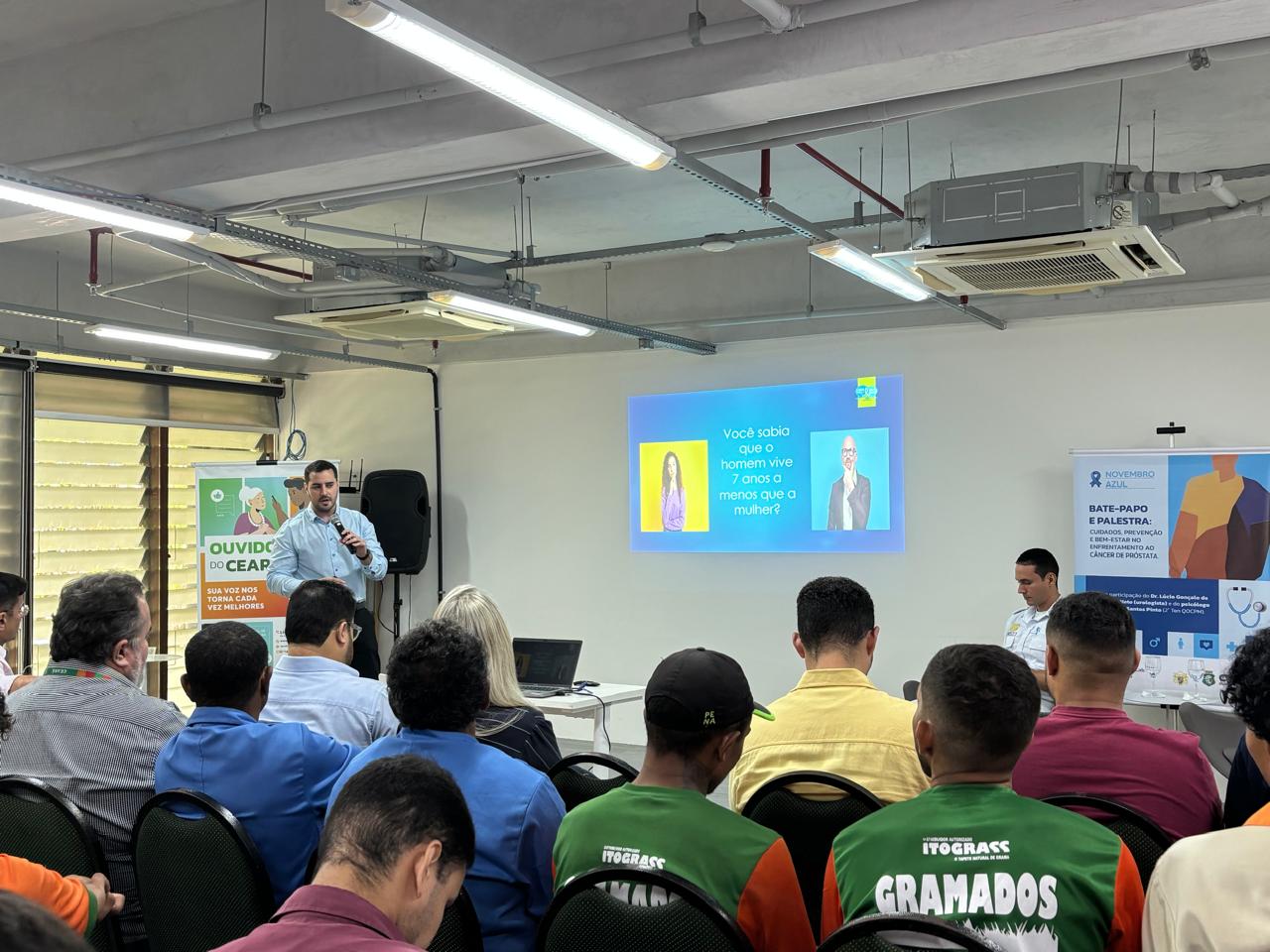 O encontro contou com um bate-papo e palestra conduzidos pelo Dr. Lúcio Gonçalo de Alcântara Neto, urologista, que compartilhou orientações essenciais sobre saúde do homem, autocuidado e prevenção ao câncer de próstata.