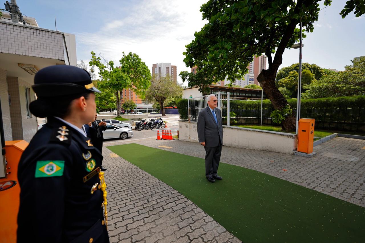 A autoridade diplomática está em cumprimento de agenda oficial no Ceará , e na manhã de ontem (23) esteve na Vice-Governadoria do Estado do Ceará, onde recebeu honras militares.